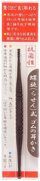 グリーンベル らせん式ゴムの耳かき <2008年グッドデザイン賞受賞!>価格: 294円レビュー評価: 0.0 レビュー数:0 G-2160 螺旋(らせん)式 ゴムの耳かき【メーカー希望小売価格】; ¥368(税抜き¥350)【品質表示】 抗菌性エラストマー【本体重量】 3g (パッケージこみ重量 14g)【パッケージサイズ】 (W)36x(H)170x(D)7mm発売元:グリーンベルグリーンベル らせん式ゴムの耳かき 2008年グッドデザイン賞受賞「使いやすく高い機能性」として<螺旋式ゴムの耳かき・G-2160>に高い評価を獲得黒色だから耳垢がよく見える!細・太の2タイプ●エラストマーが持つ適度なしなりと螺旋(らせん)型の先端形状により耳孔内の凹凸にフィットし、へはり付いた耳垢を確実にキャッチします。●両端の直径が |