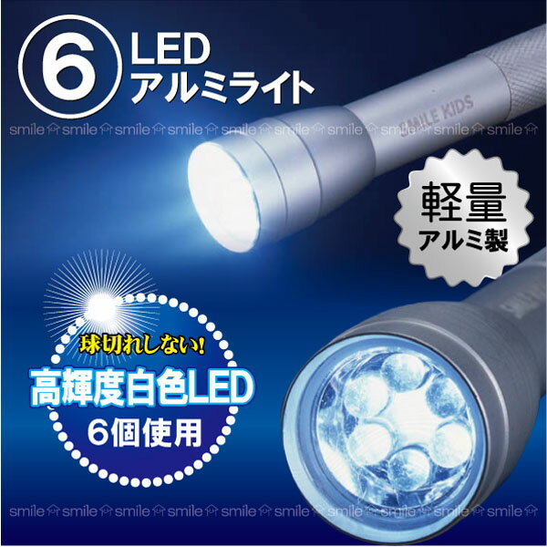 6LEDアルミライト[APL-3203]【ポイント 倍】価格: 924円レビュー評価: 4.5 レビュー数:4 白色LED点灯で、明るく球切れしません!防滴形防水性なので、通勤、通学、アウトドアなどに幅広く活躍します。本体のお尻部分のスイッチでON/OFF切替。アルミ製なので、とても軽く、持ちやすい!携帯に便利なストラップ付き。■仕 様 サイズ (約)直径2.6x高さ16.5cm 重量 約55g(電池重量含まず) 使用電池 単三乾電池2本(別売り) 材質 本体:アルミスイッチカバー:合成ゴム |
