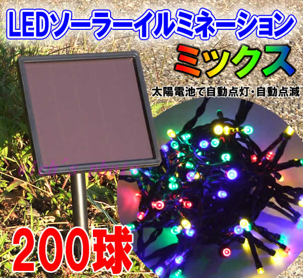 ■電気代不要■太陽電池で自動点灯■点滅するMIX LED200灯LEDソーラーイルミネーション200球(ミックス)価格: 3,980円レビュー評価: 4.0 レビュー数:3 LEDソーラーイルミネーション200球(4色MIX) 点灯・点滅する4色のLED200灯 前回タイプは点滅のみでしたが、 今回は点灯・点滅が切替できるスイッチ式になりました! ・太陽電池で自動点灯・自動点滅 ・電気代不要! ・コード全長は余裕の約21m50cm ソーラー式で経済的!電源いらずで自由な場所に! ストレートタイプのイルミネーション。 シンプルなのであらゆる場面に。 LEDは後ろのスイッチで点灯と点滅から選べます。 雰囲気を盛り上げること間違いなし。 昼は太陽光で充電、夜間はきれいにライトアップ♪ お庭やフェンス・ベランダに設置するだけで、 ホーム・ルミナリエが楽しめます。 今回、交 |